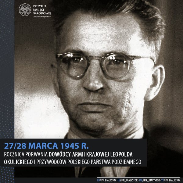 27/03/2023KalendariumRocznica porwania dowódcy Armii Krajowej Leopolda Okulickiego i przywódców Polskiego Państwa Podziemnego - kalendarium - 27/28 marca 1945