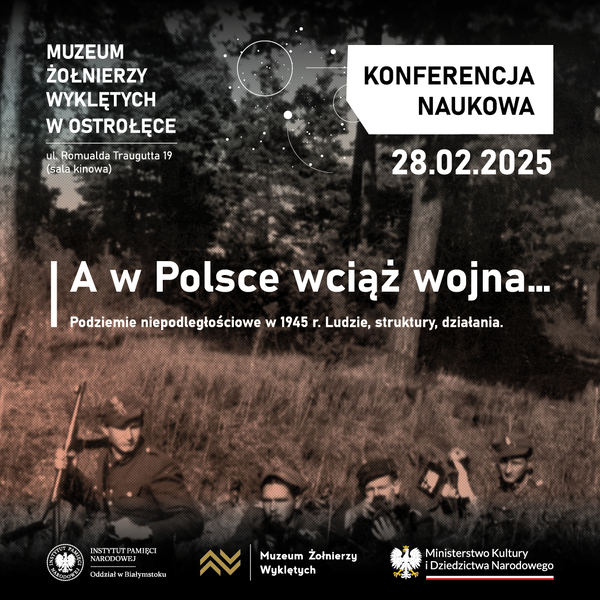 21/02/2025Konferencja naukowa „A w Polsce wciąż wojna… Podziemie niepodległościowe w 1945 r. Ludzie, struktury, działania” w Muzeum Żołnierzy Wyklętych w Ostrołęce – 28 lutego 2025